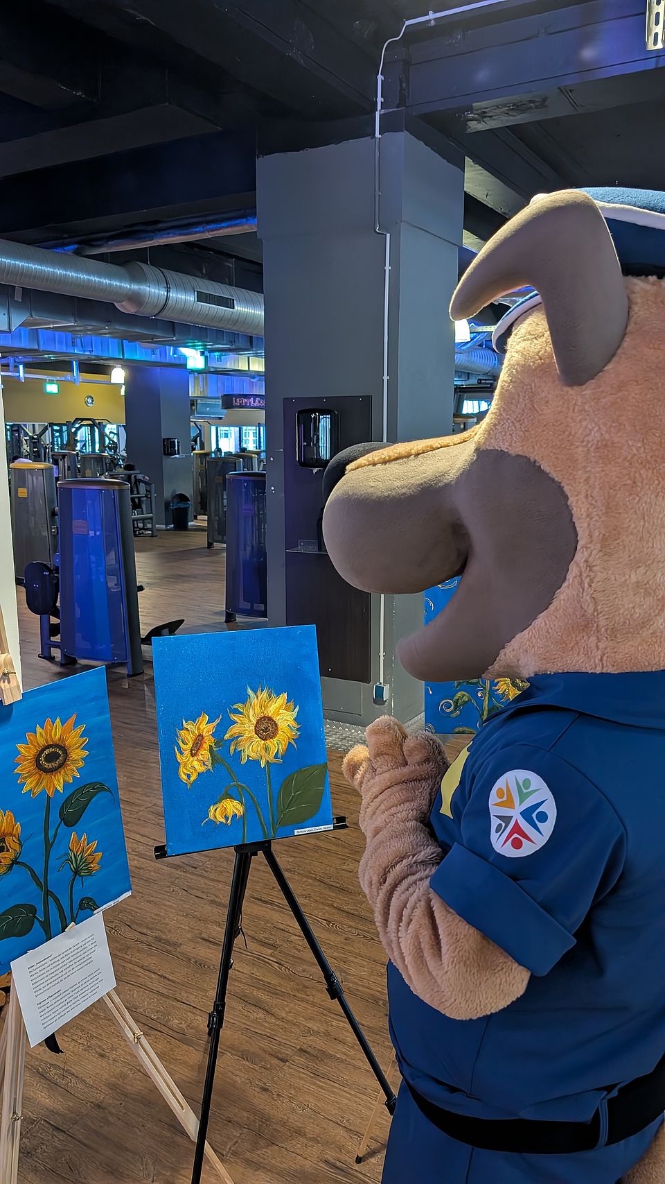 Aber natürlich gibt es auch Bilder, die den Betrachtenden die traumatischen Erlebnisse der Malerinnen nachempfinden lassen. „Einige Bilder erzählen vom Krieg. Für uns ist das ein schwieriges Thema, das wir nicht immer besprechen können und wollen.“ – „Es ist jedoch wichtig, dass die Frauen einen Raum und eine Möglichkeit haben, das Erlebte zu verarbeiten“, so Michael Mrowietz, Fachbereichsleiter Migration und Integration beim DRK Gelsenkirchen. Da sei es ein glücklicher Zufall, dass auch Natalia Aksonova zu der Gruppe stieß. Sie nämlich war in der ukrainischen Heimat als Kunsttherapeutin tätig.