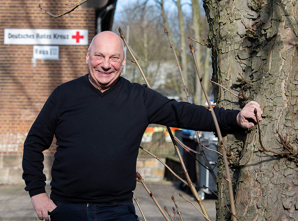 „Ich bin in Schalke aufgewachsen. Mein bester Freund wohnte nah beim DRK. Als Jungs haben wir fasziniert zugeschaut, wie sich die Mitarbeitenden dort getroffen und sich auf den Weg gemacht haben zu den Schalke-Diensten. Wir haben uns gesagt, da wollen wir auch mal mitmachen – und dann haben wir vom Jugendrotkreuz gehört.“ Noch gut erinnert sich Martin Buhlmann an diese Sehnsucht und den Moment, der sein ganzes Leben prägt, beruflich wie auch privat. Die folgenden fünfzig Jahre nämlich bestimmt die Hilfsorganisation seinen Alltag: Hier arbeitet er ehrenamtlich, später auch hauptamtlich, hier lernt er seine Frau kennen, leistet mit ihr gemeinsam Dienste und bindet später sogar den gemeinsamen Sohn ein.