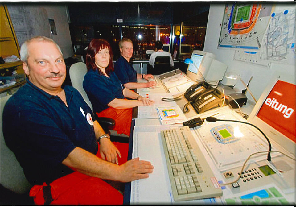 Einige Jahre später lernt Martin Buhlmann seine spätere Frau im Jugendrotkreuz kennen. Wobei: „Sie war damals 16, ich war ihr Gruppenleiter und älter – da war nix. Aber sie hat ihre Ausbildung gemacht und wir beide waren ehrenamtlich für das DRK tätig. Erst im Rettungswagen im Parkstadion, später in der Arena.“ Eine Leidenschaft, die die beiden vererben. „Später kam auch mein Sohn mit. Wir sind dann immer als Familie zu unseren Diensten ins Stadion gefahren. Wir haben das wirklich gelebt.“ Mit ganzem Herzen. Das spürt man deutlich, wenn der 64-Jährige erzählt.