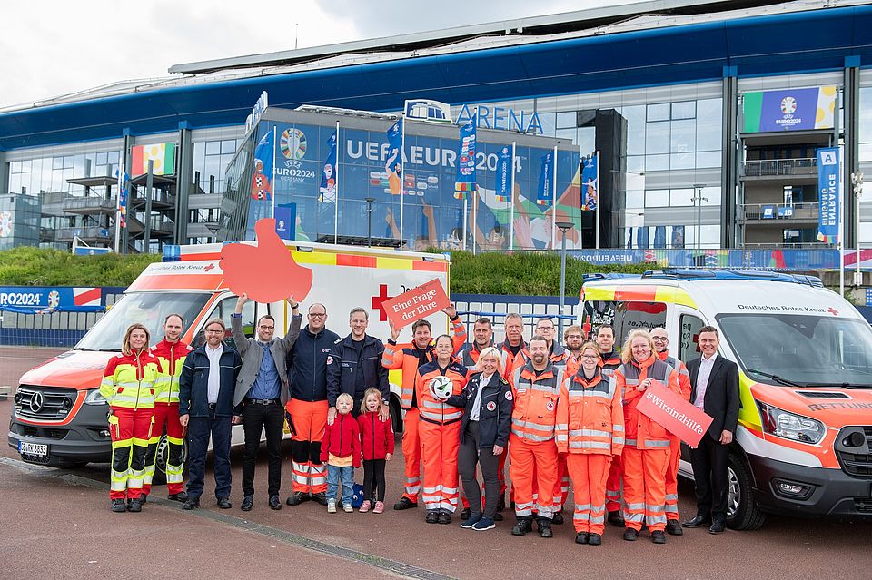 So gut man sich vorbereitet habe, außergewöhnlich seien die kommenden Wochen für das hiesige DRK dennoch, sagt Dr. Hasan Sürgit, Vorsitzender des Vorstandes des DRK-Landesverbandes Westfalen-Lippe. Denn: „Die Dimensionen sind größer, ebenso wie die öffentliche Wahrnehmung. In so kurzer Zeit so viele Einsätze zu haben, das ist schon eine Herausforderung.“ Vor allem personell. Denn das „normale“ Leben mitsamt seinen DRK-Einsätzen gehe ja weiter. „Deswegen binden wir Helferinnen und Helfer aus dem ganzen Land ein.“ Jetzt jedoch überwiege vor allem die Vorfreude. „Die ist riesig. Wir spüren deutlich, unsere Leute brennen für ihre Aufgaben.“ Kurzum: „Wir als DRK stehen bereit. Von uns aus kann die EM jetzt losgehen.“