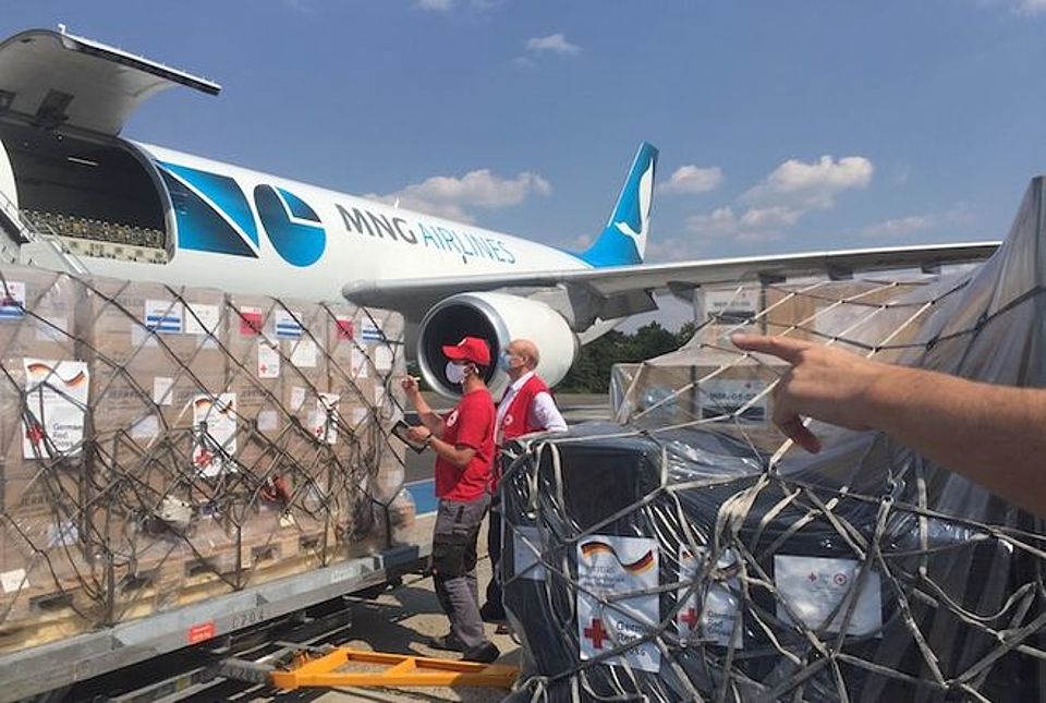 Vier Tage nach der verheerenden Explosion in Beirut mit mehr als 130 Toten und Tausenden Verletzten hat das Deutsche Rote Kreuz (DRK) am Samstag in Berlin 43 Tonnen Hilfsgüter mit einem Airbus A300F auf den Weg nach Beirut geschickt. „Wir sind froh, dass wir den Menschen in der libanesischen Hauptstadt mit Unterstützung des Auswärtigen Amtes so schnell helfen können. Die Lage vor Ort ist katastrophal. Bis zu 300.000 Menschen haben durch die Explosion ihre Wohnungen verloren. Deshalb wird dieser Hilfstransport sicherlich nicht der letzte sein“, sagt DRK-Generalsekretär Christian Reuter. Der Hilfsflug startete am Samstagnachmittag auf dem Flughafen Berlin-Schönefeld und sollte in der Nacht in Beirut landen.