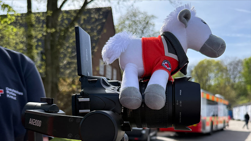 Deswegen wird heute gedreht, was das Zeug hält. Bei schönsten Frühlingswetter verwandelt sich das Areal des DRK Gelsenkirchen am Katastrophenschutzzentrum in eine Filmkulisse. Zuweilen entstehen hier sogar zwei Videos gleichzeitig. Die Hauptdarsteller in den Clips sind die des täglichen Lebens: Mitarbeitende des Roten Kreuzes, die sich in ihrer Freizeit in den Dienst der Gesellschaft stellen, die sich einbringen, um anderen zu helfen. Sonst nimmt man sie kaum wahr. Heute stehen sie im Mittelpunkt der humorvollen Kurz-Videos. „Auf diese Weise möchten wir den Menschen unsere Arbeit vorstellen und zeigen, dass wir Spaß daran haben“, sagt Irem Kaya, die gerade eine der Regisseurinnen und zugleich Kamerafrau ist.
