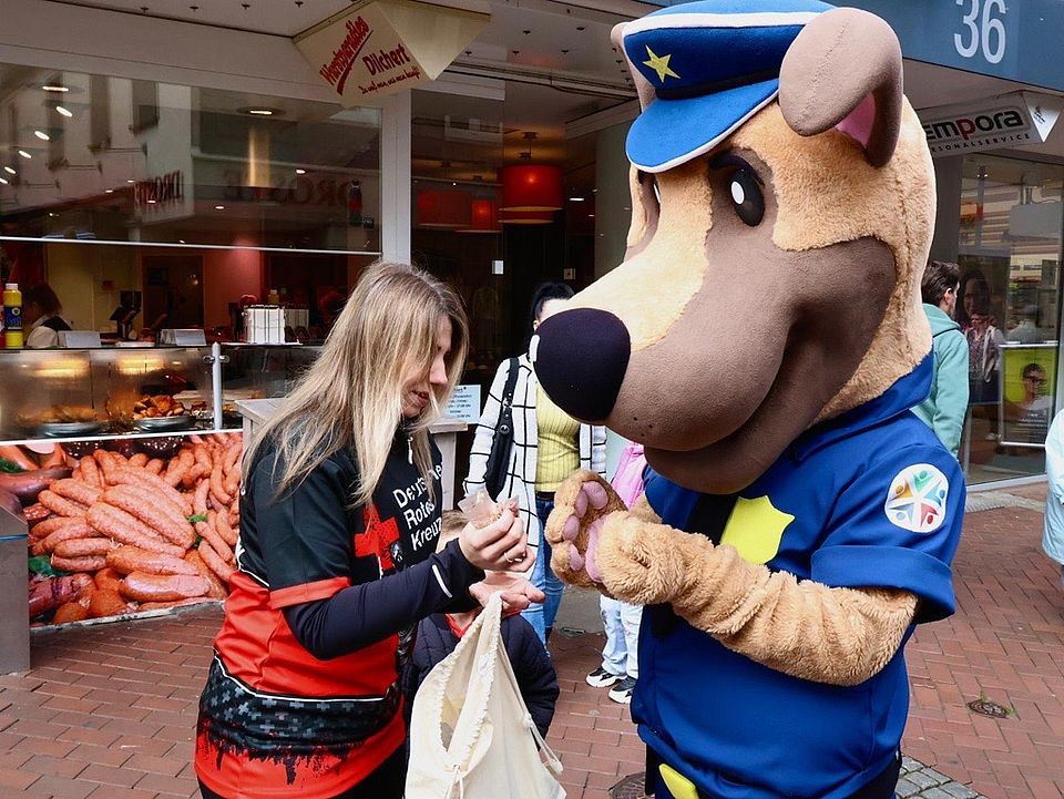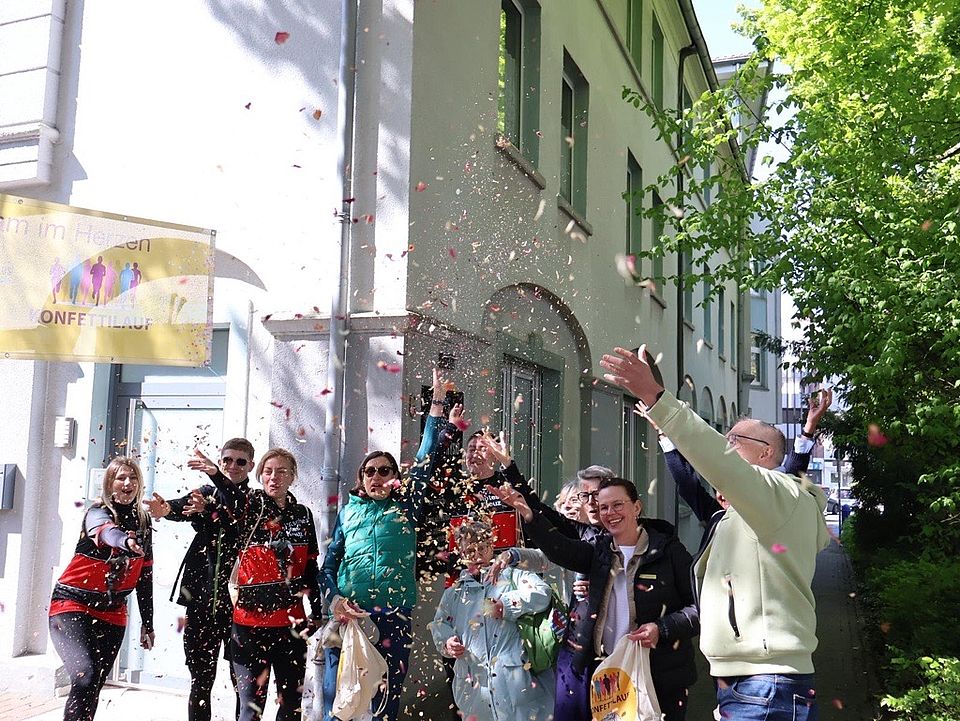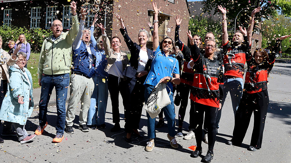 Natürlich waren auch zahlreiche Mitarbeitende des DRK mitgelaufen. Ehrenamtliche wie hauptamtliche. Während andere sie schon am Zielort erwarteten. Erstmals nämlich hatte das Team der Öffentlichkeitsarbeit die Dokumentation der Veranstaltung übernommen, drehte Videos vom Zieleinlauf oder beeindruckende Aufnahmen mit der Drohne. Die Ziellinie überschritt gegen Mittag auch Oberbürgermeisterin Andrea Henze, die Schirmherrin des Konfettilaufes. „Es ist gut, immer wieder aufmerksam zu machen auf diese Erkrankung. Das ist ein Thema, was mir sehr am Herzen liegt“, lobte sie das Engagement aller für die gute Sache.