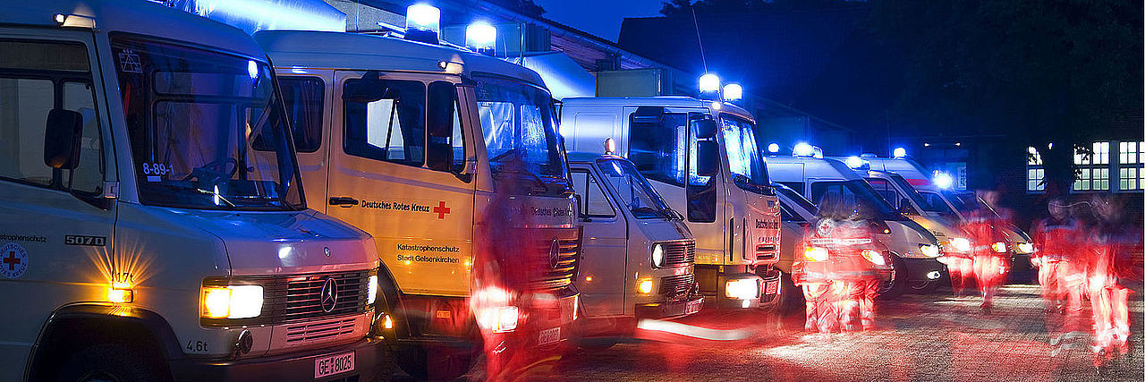 Darüber hinaus stellen wir als Nationale Hilfsgesellschaft unser gesamtes Potenzial im Rahmen des komplexen Hilfeleistungssystems zur Verfügung. Eine vertrauensvolle und freundschaftliche Zusammenarbeit mit der Feuerwehr, dem THW, den Behörden und den anderen Hilfsorganisationen ist das "Erfolgsrezept" für den Katastrophenschutz in Gelsenkirchen.