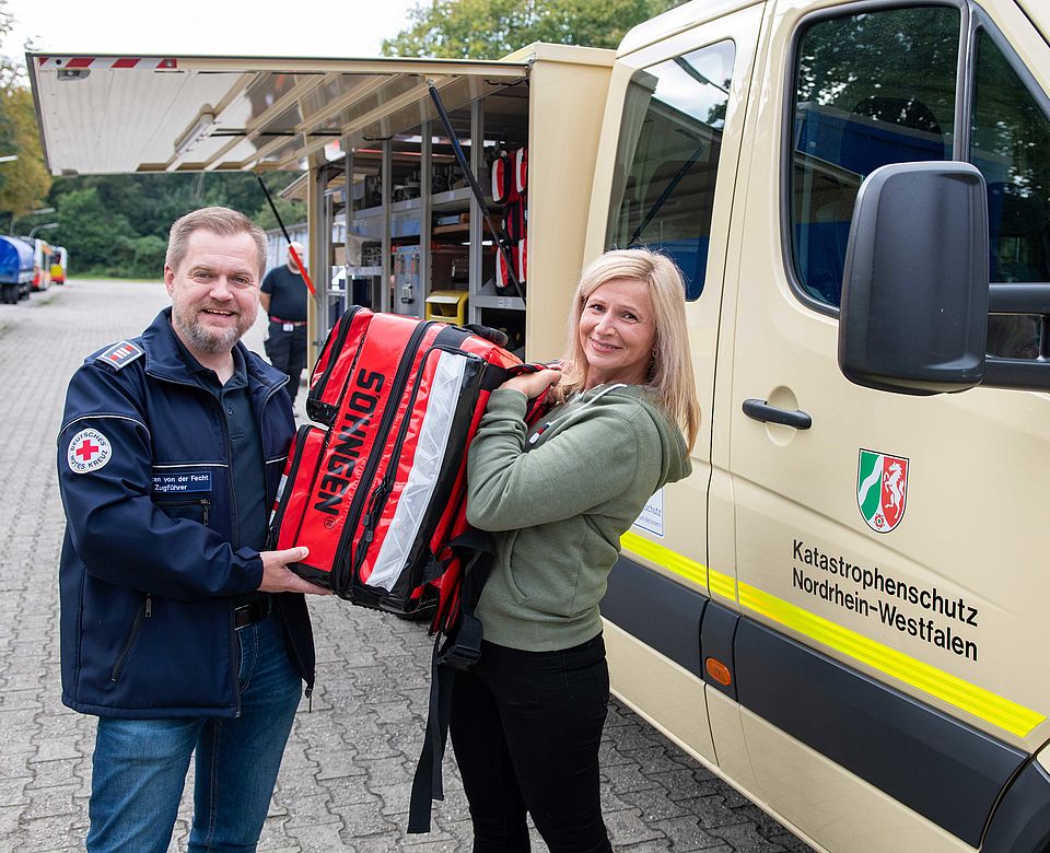 Apropos Einsatzkleidung: Zwei der Interessierten haben sich gleich hier entschieden. Sie sind dabei – und bekommen ihre Kleidung übergeben. Ein großer Moment: Sie sind jetzt beim DRK in Gelsenkirchen und absolvieren im Januar als erste Teilnehmende die komprimierte Grundausbildung. Tim weiß schon, worauf er sich spezialisieren möchte: „Das Spannendste für mich ist die Technik.“ Fatma ist von einem anderen Bereich fasziniert: „Ich möchte in den Sanitätsdienst. Und ich habe echt Luft darauf!“