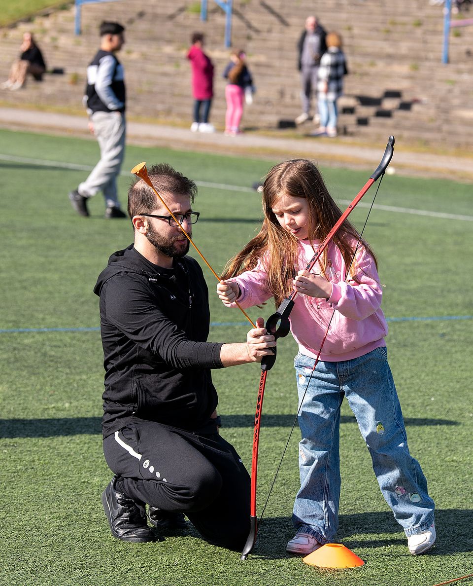 Jener übrigens ist hier und heute kein Thema. Es wird Tennis gespielt, es wird balanciert, es wird geboxt oder sogar mit Pfeil und Bogen geschossen. Immer auch mit dem Ansinnen, junge Menschen für Bewegung zu begeistern. Mitunter, erklärt Michael Mrowietz, entstünden hier auch Kontakte zwischen Kindern und Vereinen, die sich ohne das Fest nie ergeben hätten. „Darum geht es eben auch: Den jungen Menschen die Möglichkeit geben, sich neue soziale Räume zu erschließen.“