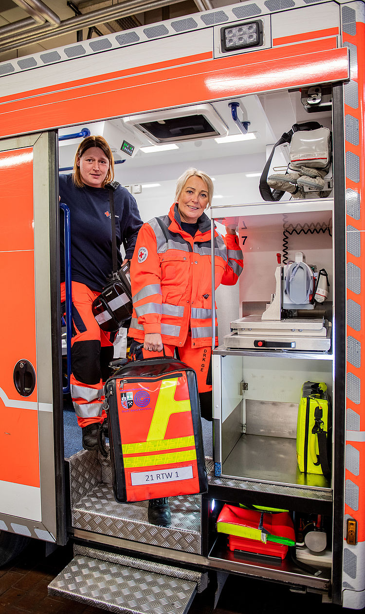 Meike Schiller und Stefanie Bruns sind seit 14 Jahren gemeinsam im Einsatz und waren damals die erste rein weibliche Besatzung eines RTW in der Stadt.
